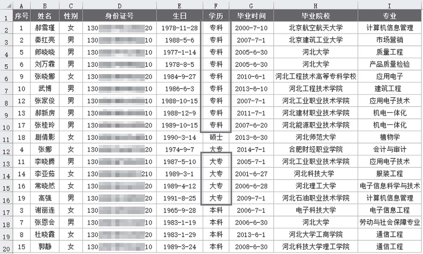 图2-22 按学历排序筛选专科学历
