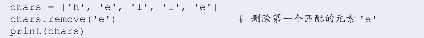 remove()方法用于删除列表中的某个元素,若列表中有多个匹配的元素,只会删除匹配到的第一个元素。示例代码如下:
