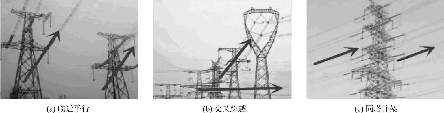 图1-30 平行、交叉跨越和同塔并架线路容易产生感应电