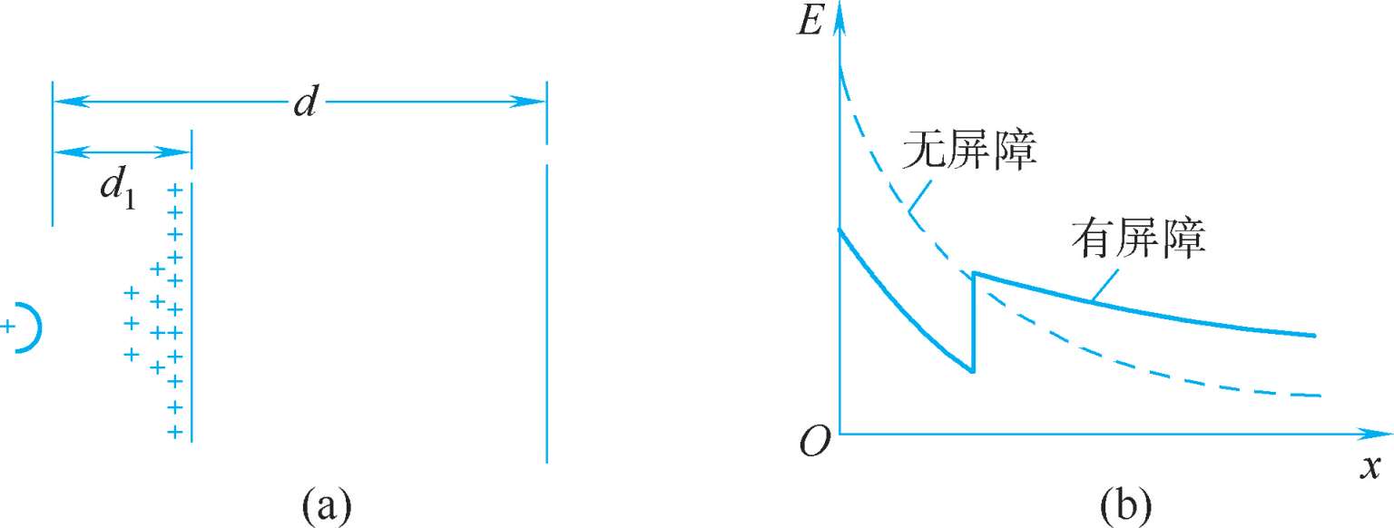 图1-38 正尖—负板间隙中屏障的作用