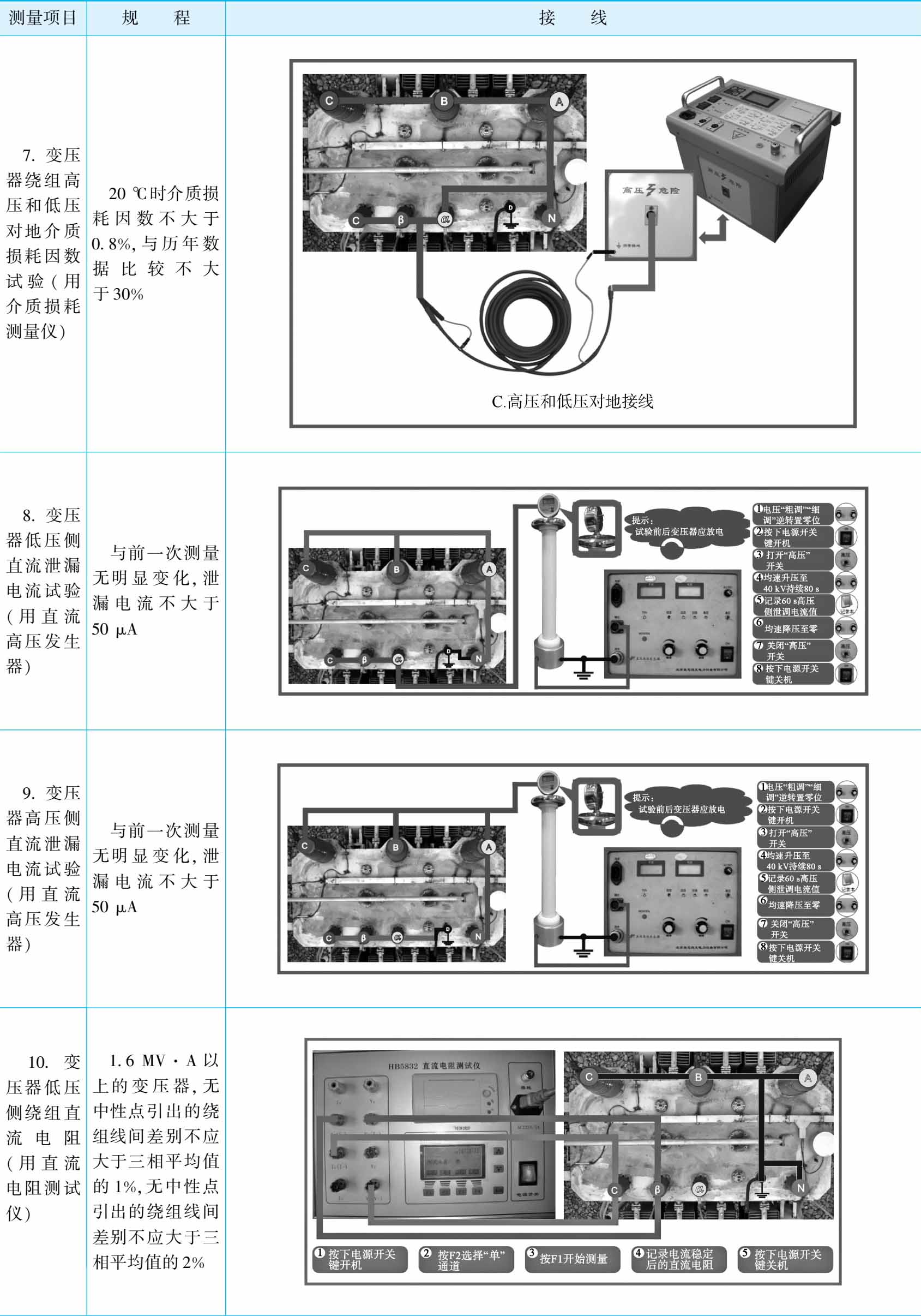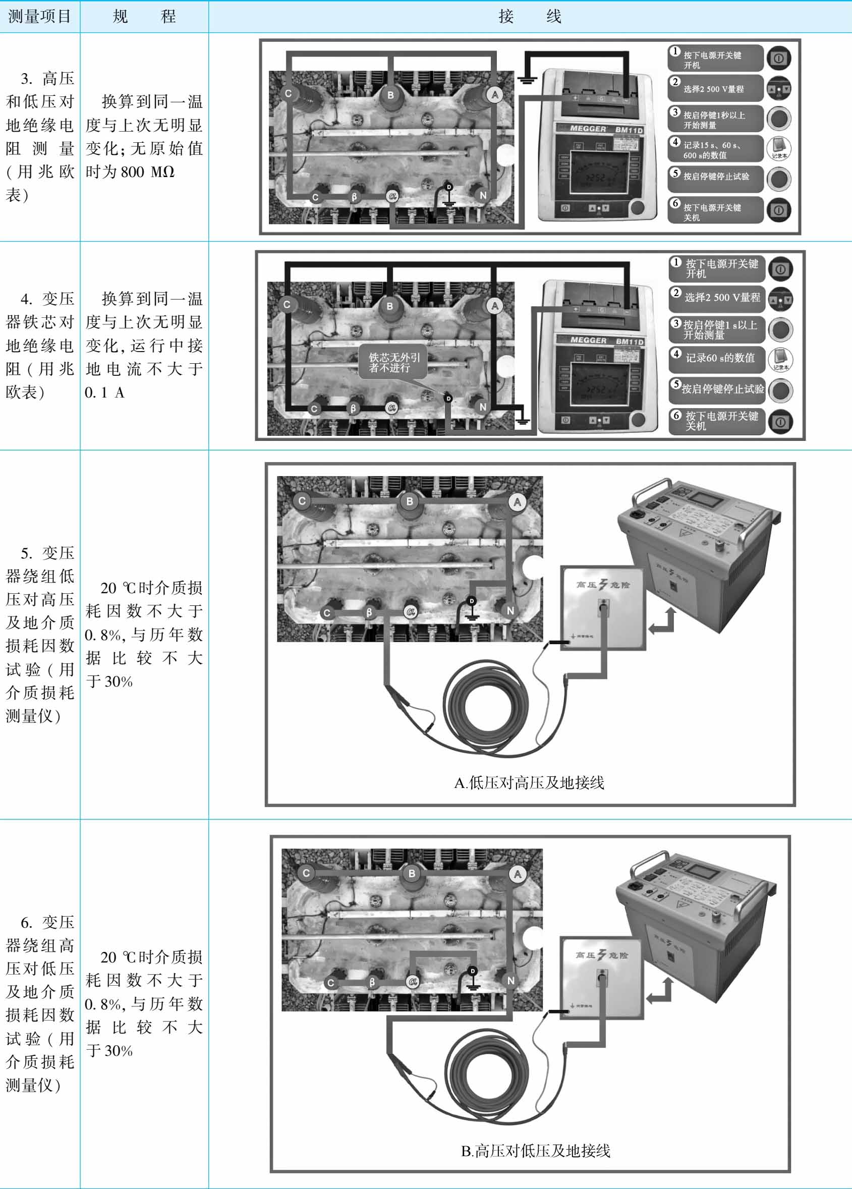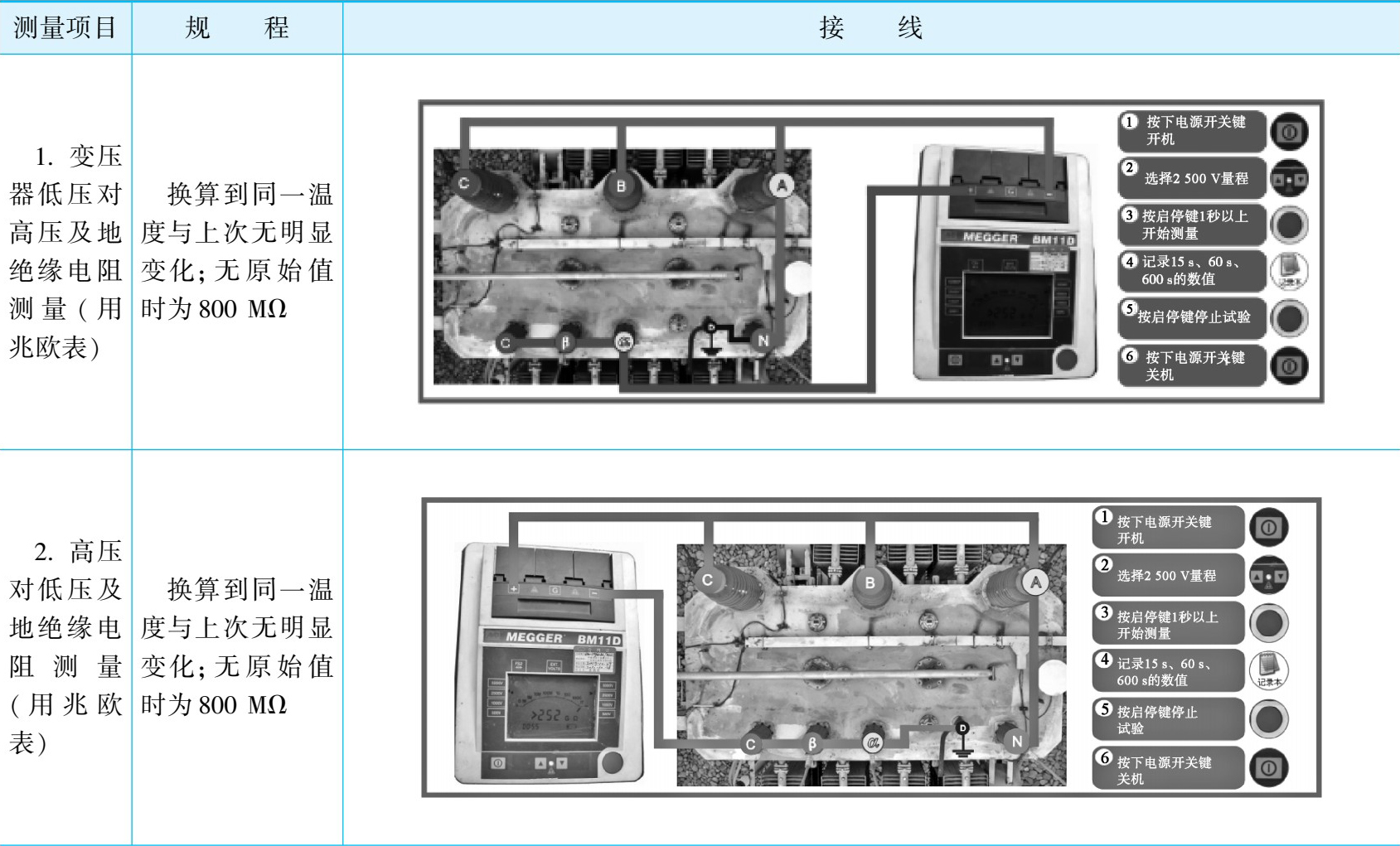 (1)测量绕组连同套管绝缘电阻、吸收比和极化指数;