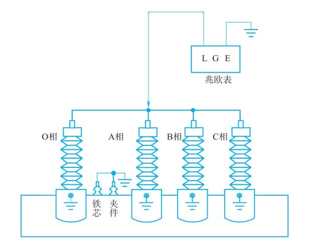 图2-4 测试变压器高压端绕组绝缘电阻接线图
