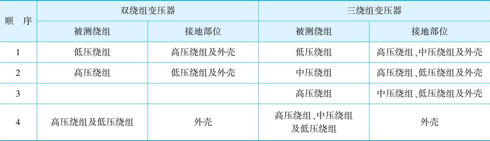 表2-4 变压器绕组绝缘电阻测量顺序及部位