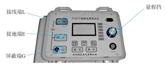 图2-3 所示为绝缘电阻测试仪功能图,图2-4 所示为测试变压器高压端绕组绝缘电阻接线图,图2-5 所示为测试变压器套管末屏绝缘电阻接线图。
