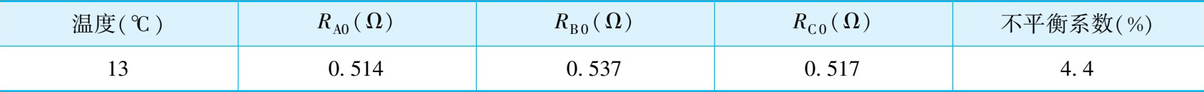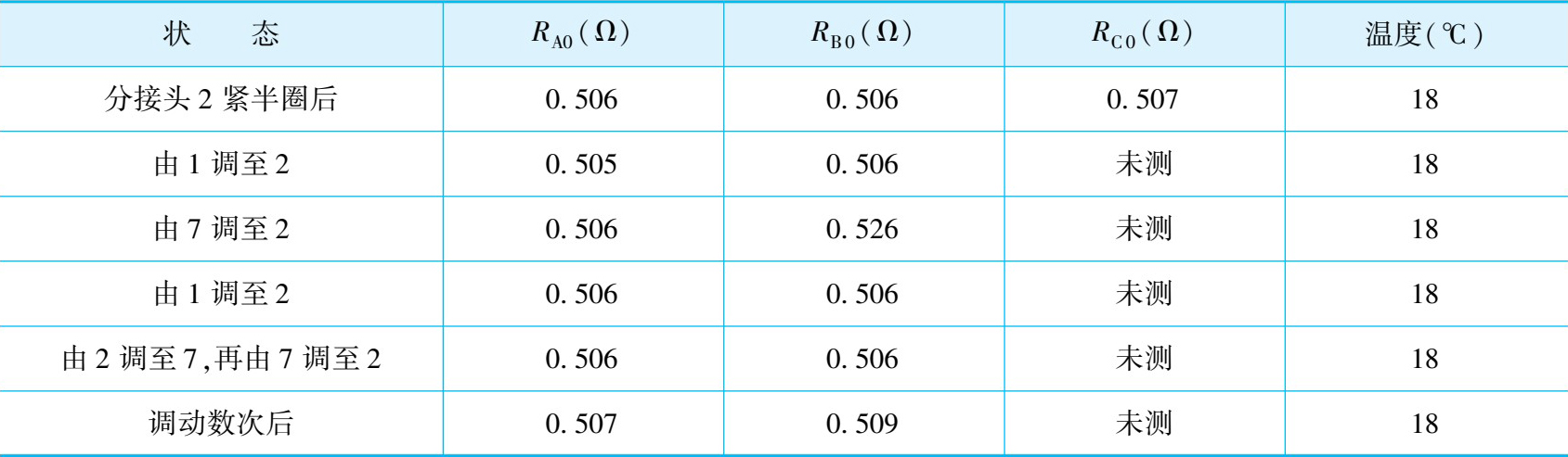 某供电局变电所的一台 50 MV·A的电力变压器,在测量 110 kV侧分接头 2 的直流电阻时,三相电阻不平衡系数为 4.4%,超过《试验规程》规定的 2%,实测数据见表2-8。