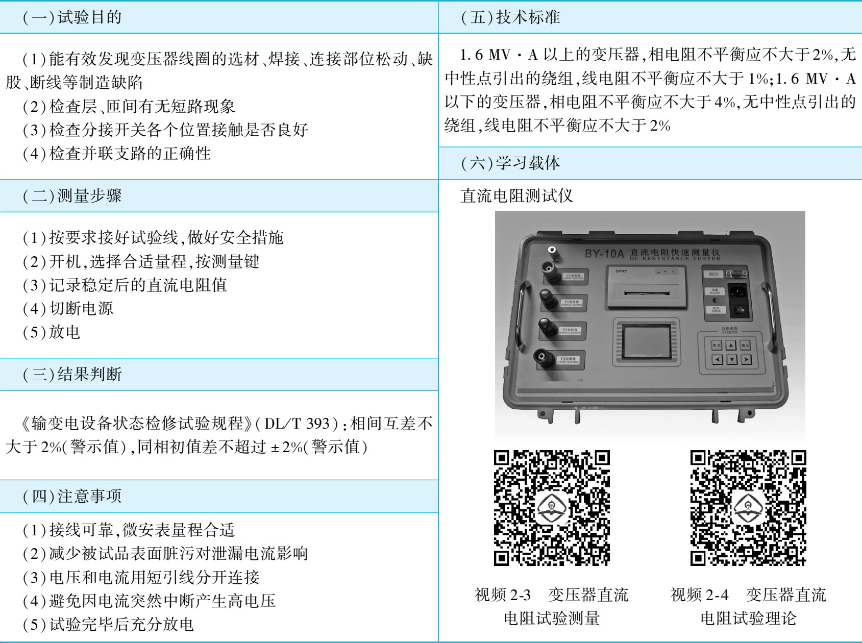 (1)测量仪器的不确定度不应大于 0.5%,绕组电阻值应在仪器满量程的 70%之上。