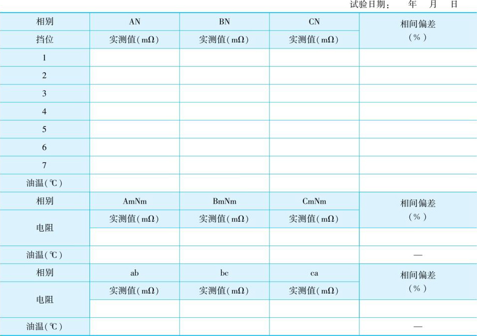 (2)在所有绕组电阻测量期间,铁芯磁化的极性应保持不变。