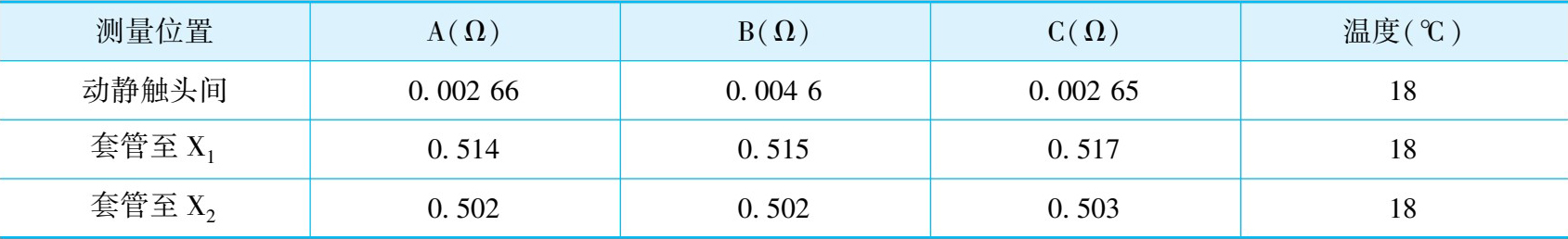 表2-10 动静触头间及静触头至套管间的直流电阻