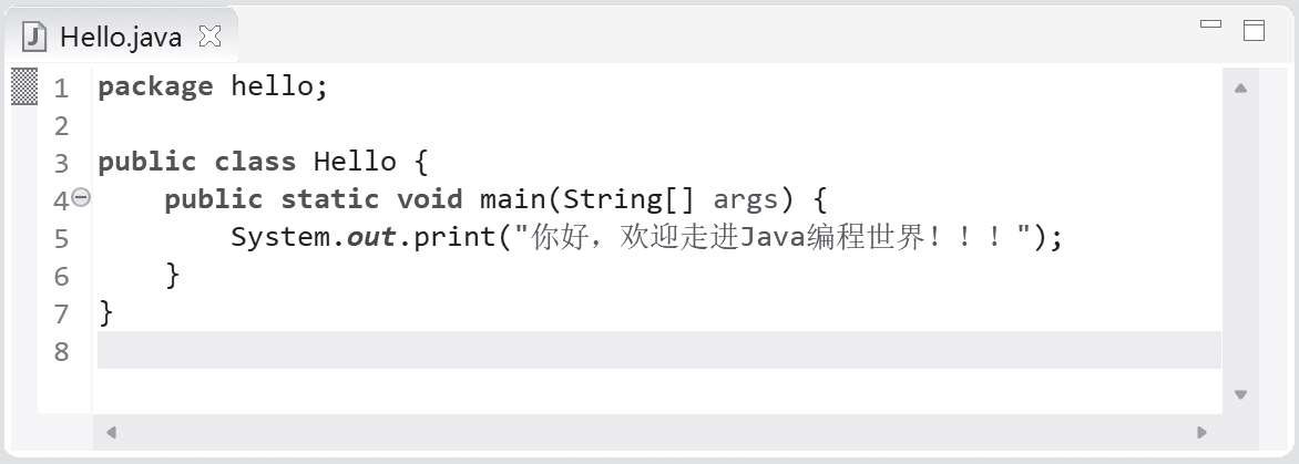 Hello.java的代码运行结果如图1-25所示。