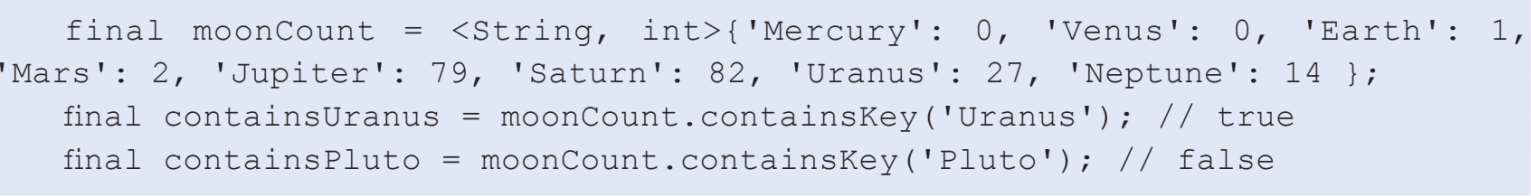 ② bool containsKey(Object? key) :判断Map中是否包含key。示例如下: