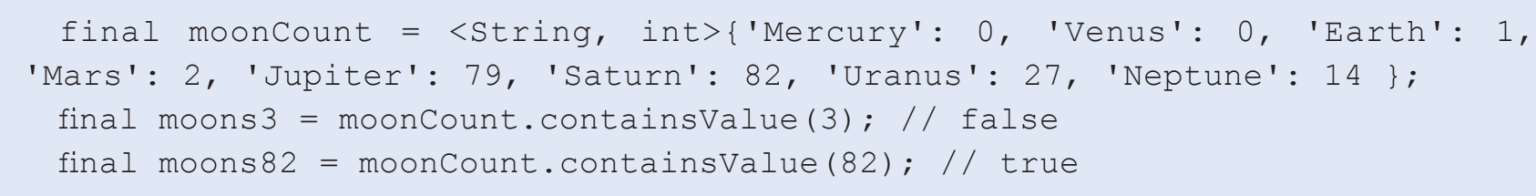 ③ bool containsValue(Object? value) :判断Map中是否包含value。示例如下: