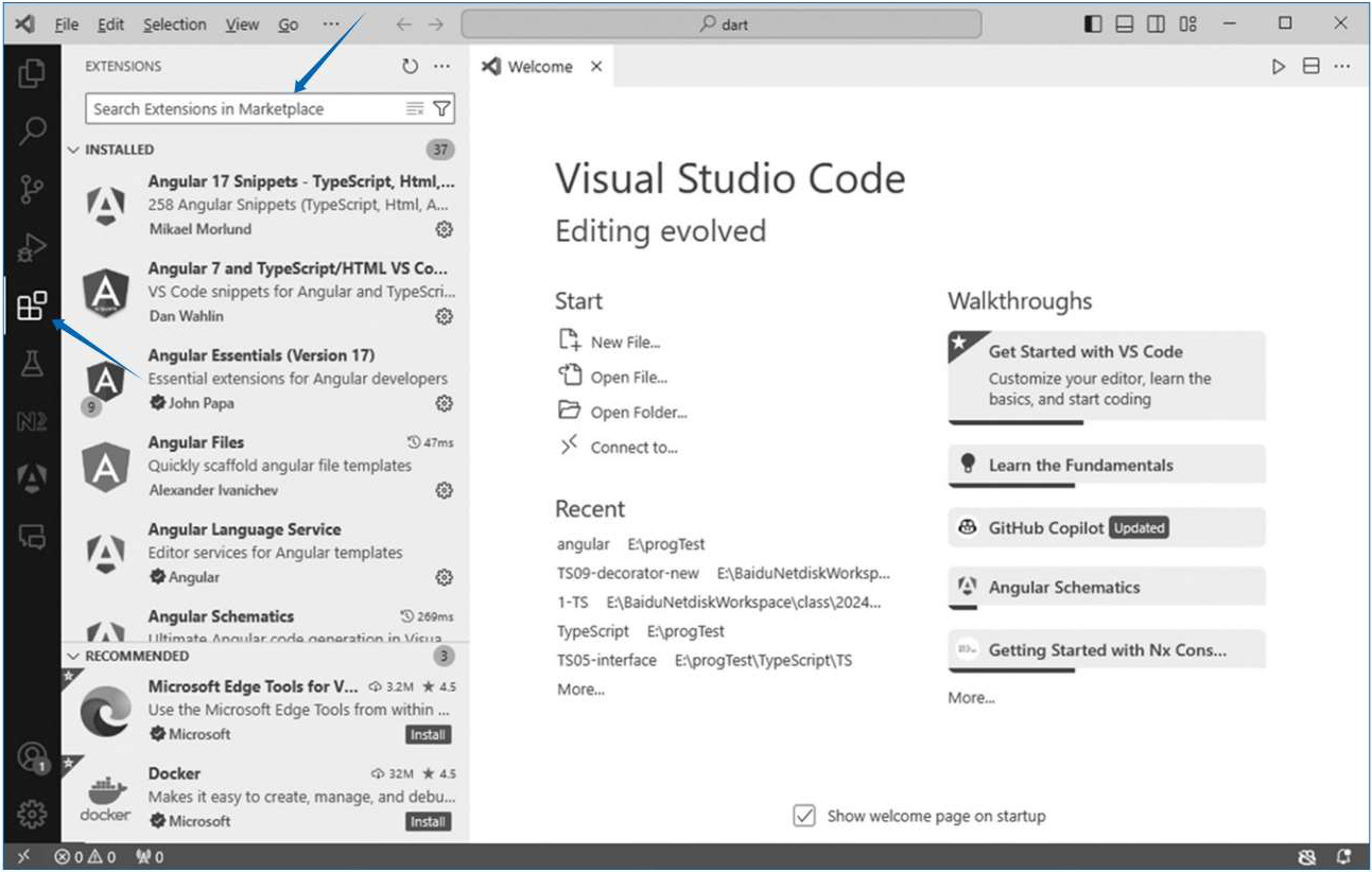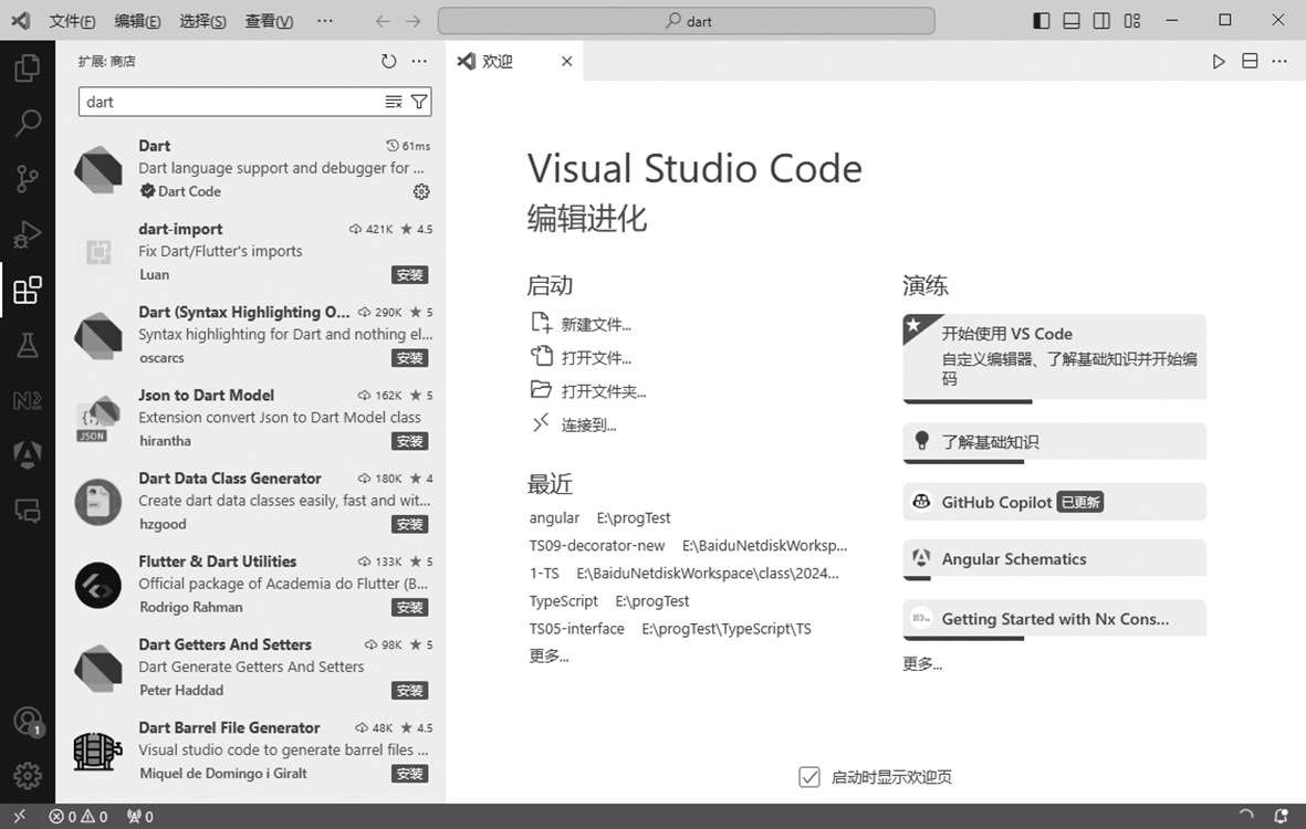 (4)安装Dart插件。如果要在VS Code中运行Dart语言,需要安装该插件,如图1.10所示。