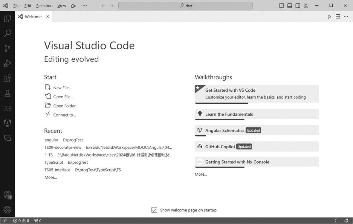 图1.6 VS Code初次运行界面