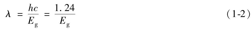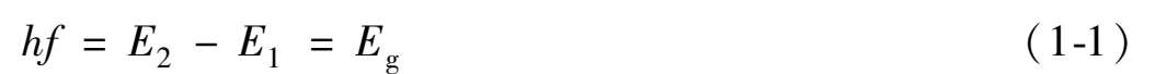 式中, h 为普朗克常数(6.626 × 10- 34 J·s), f 是光子的频率, E 2 为高能级, E 1 为低能级, E g 为材料的禁带宽度。