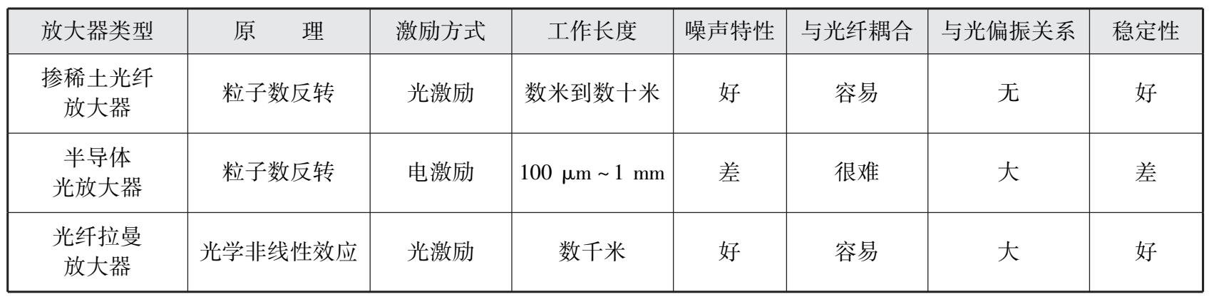 表 1-1 三种光放大器的比较