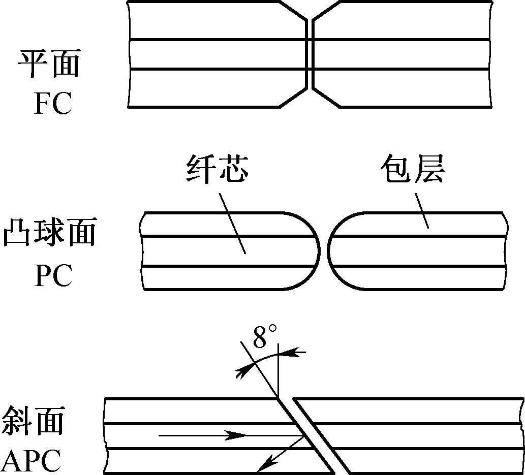 光纤连接端面有平面接触型(FC型)、物理接触型(PC型)、超级物理端面(UPC型)、斜面接触型(APC)等类型,如图1-3 所示。