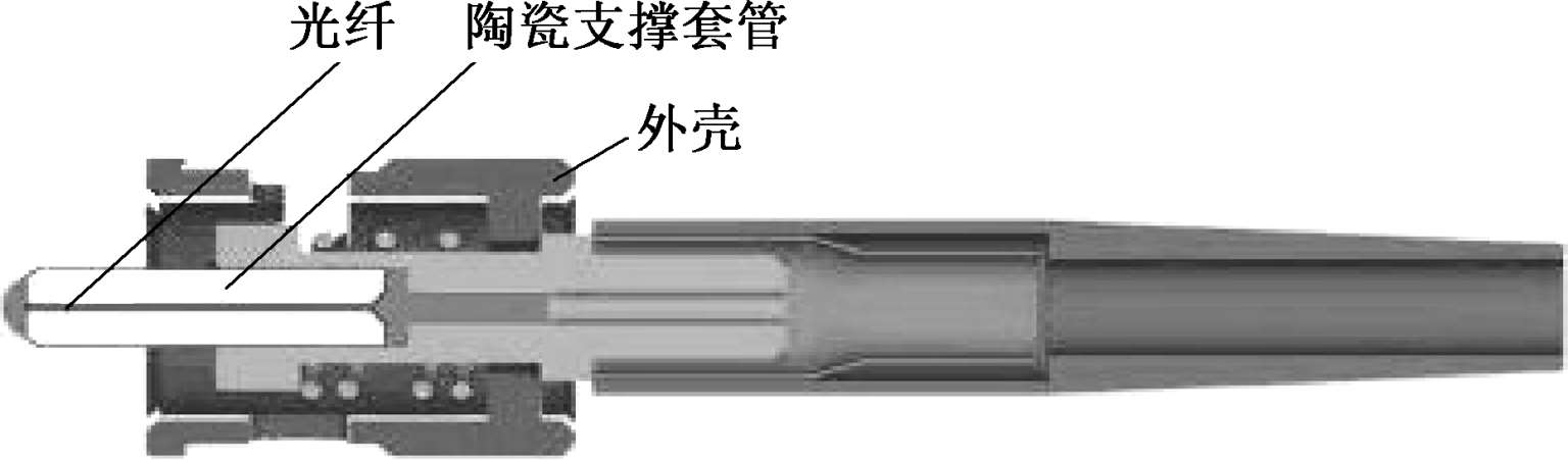 光纤连接器由光纤、陶瓷插芯、陶瓷支撑套管、组成散件和外壳组成,如图1-2 所示。