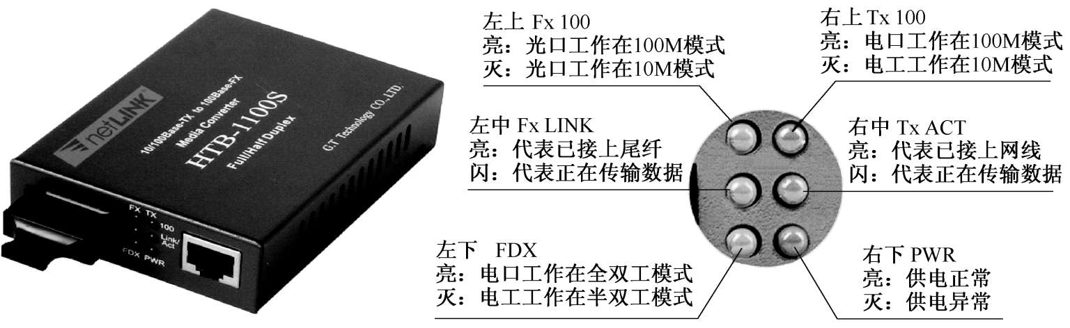 图1-57 HTB-1100S光纤收发器外形与指示灯