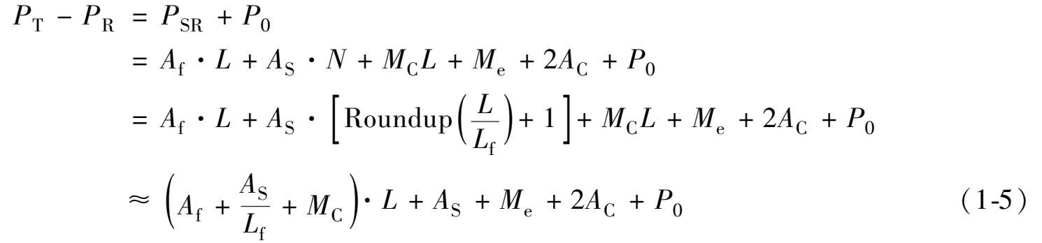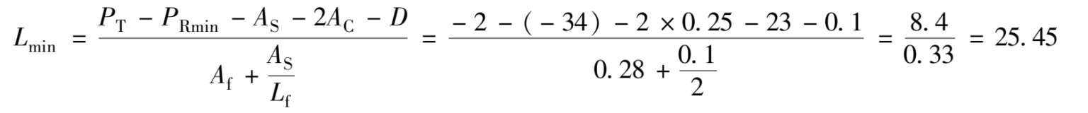 若要保证接收光功率变化不超过动态范围 D ,应该满足 P 0 + M e + M c · L ≤ D 。当刚好相等时,对应的中继距离最小,即
