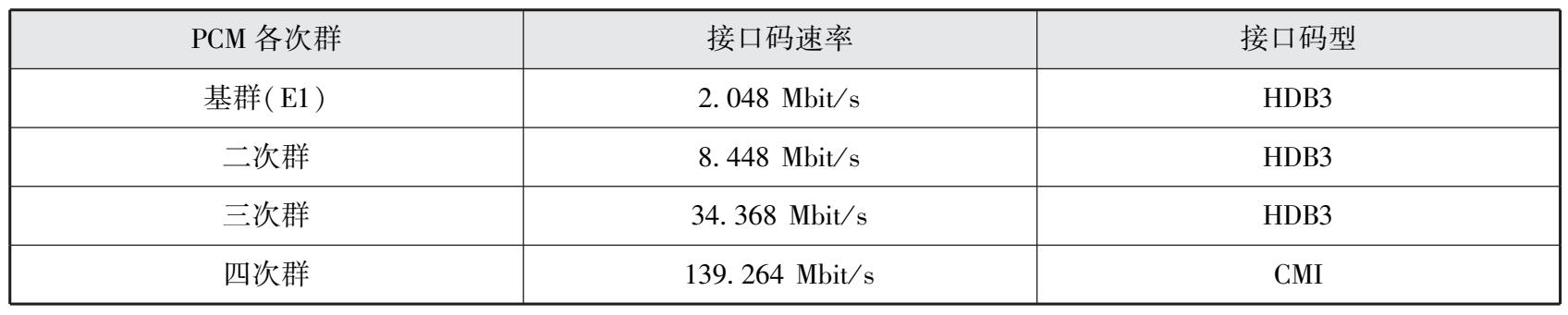 电接口与电发送机或电接收机相连,其接口码型应与电发射机或电接收机的码型一致。数字光纤通信系统常用的电接口有PCM电接口和以太网电接口。PCM电发送机或电接收机码型常采用PCM接口码型,见表 1-2。以太网电接口常采用曼彻斯特码。
