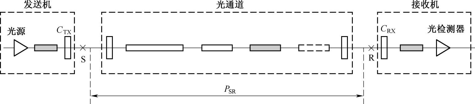 当光纤的损耗很小而系统的传输速率又足够高时,再生中继段距离由S和R点之间光通道总色散所限定,这种系统称为色散限制系统。可以根据色散来估算中继距离。