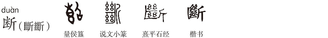 。“断”指截断物体这一动作,也指物品断开的状态,古读上声、去声以区分,今音无别。“断”金文作