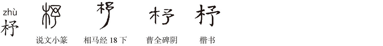 又音shù,指栎树,《集韵·语韵》:“杼,木名,栩也,亦书作柔。”也通“抒”,指舀出、汲出,《管子·禁藏》:“钻隧易火,杼井易水,所以去兹毒也。”转指表达、舒展,《楚辞·九章·惜诵》:“惜诵以致愍兮,发愤以杼情。”