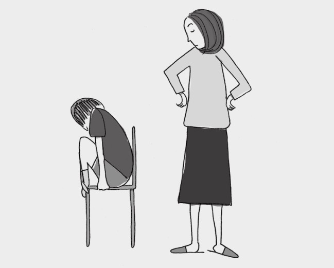 “你看,”尤利娅对儿子彼得说,“这种行为是不可以的。你不能踢妹妹。你得去坐在‘淘气台阶’