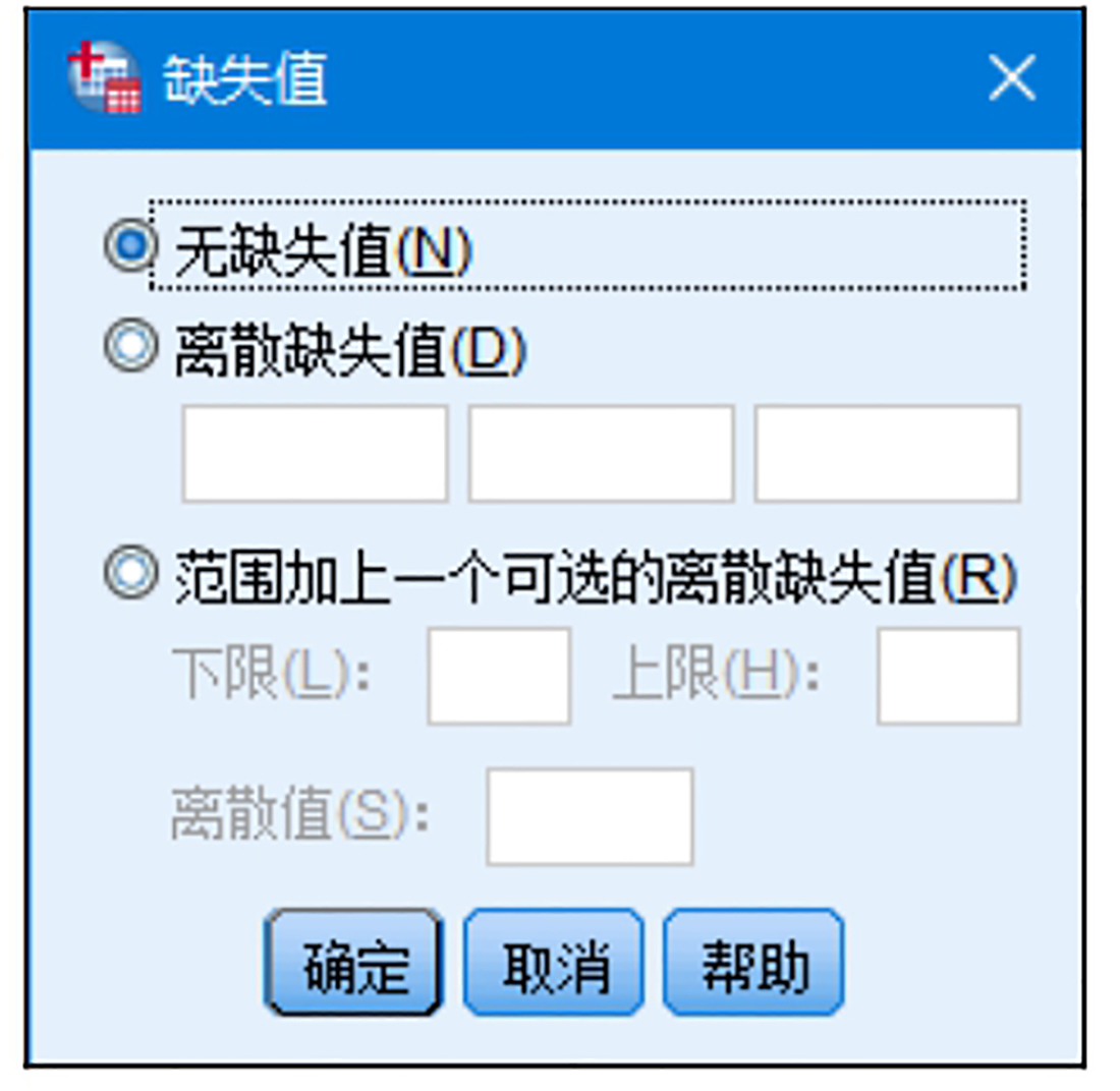 “缺失值”对话框中共有3种处理方式供用户选择: