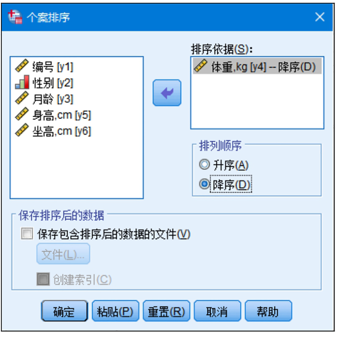 图2.61 “个案排序”对话框