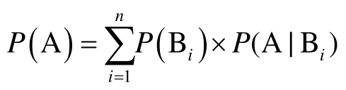 这一公式被称为全概率公式,无论随机事件A与随机事件B之间是否有关系,都会满足这一公式。公式的实质在于将随机事件A的发生切分成了 n 种可能,然后将每种可能发生的概率 P (B i )乘以在该种可能情形下随机事件发生的概率 P (A|B i ),最终将这些结果汇总,即得到随机事件A的总概率。