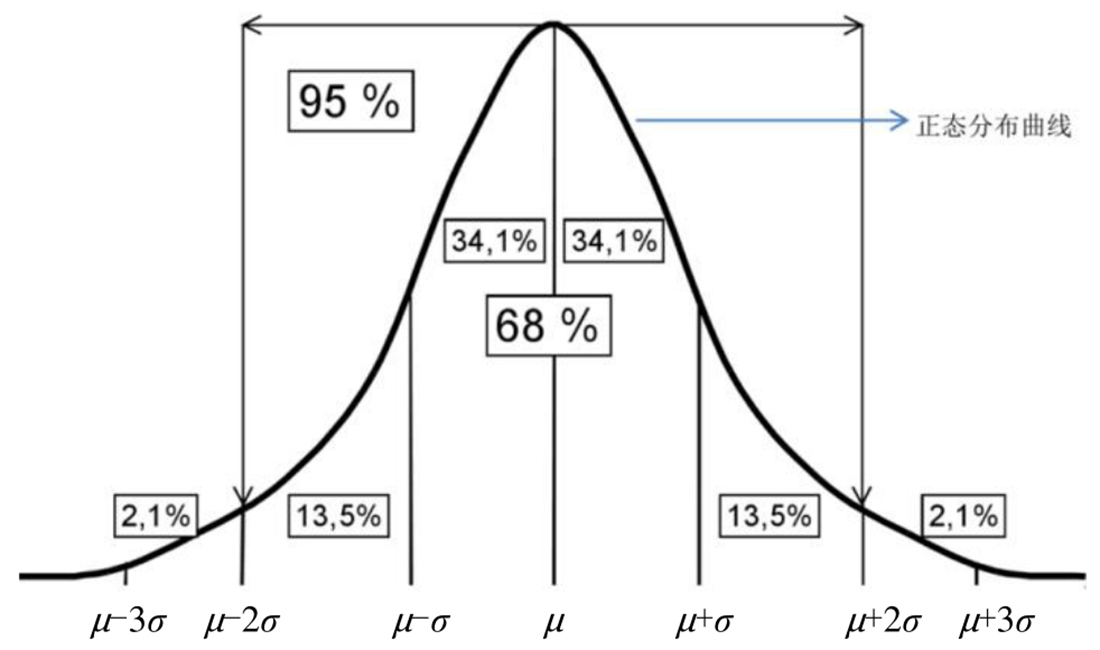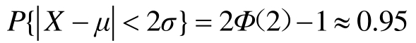 随机变量 X 落在[ μ -3 σ , μ +3 σ ]以外的概率在0.003以下,因此在实际应用中,通常认为这些事件几乎不可能发生。因此,区间[ μ -3 σ , μ +3 σ ]被视为随机变量 X 实际可能的取值区间。这就是正态分布的3 σ 原则。