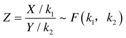F分布由英国统计学家R. A. Fisher于1924年提出,并以其姓氏的第一个字母命名。如果随机变量X服从自由度为 k 1 的卡方分布,随机变量Y服从自由度为 k 2 的卡方分布,且随机变量X和随机变量Y相互独立,那么随机变量Z服从自由度为( k 1 , k 2 )的F分布: