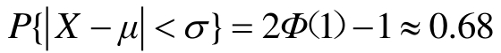 正态分布曲线下方,横轴区间( μ - σ , μ + σ )内的面积略大于68%。