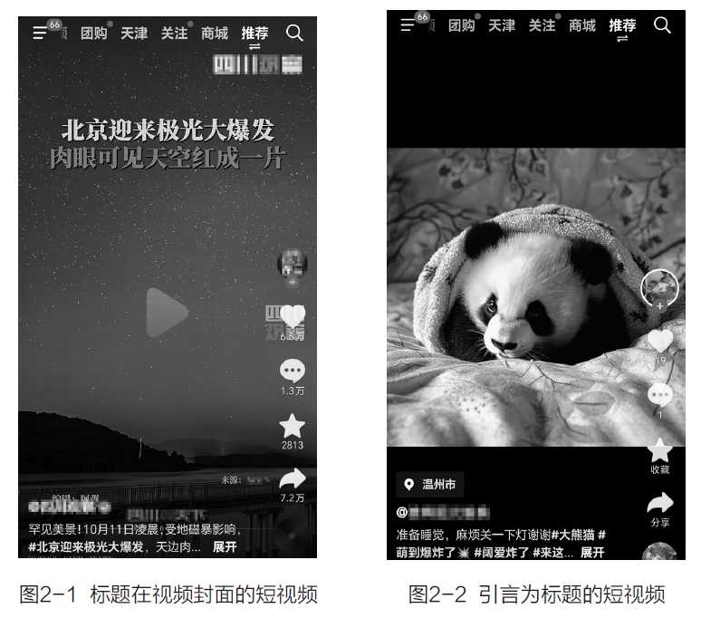 Tips: 运营者在使用创作手法和技巧时,切记要远离标题党。因为用户在被标题吸引后观看短视频,如果在观看的过程中发现,所看内容与标题大相径庭,就会降低对视频的信任度,甚至会产生反感,这就会从整体上拉低视频的点赞量和完播率。