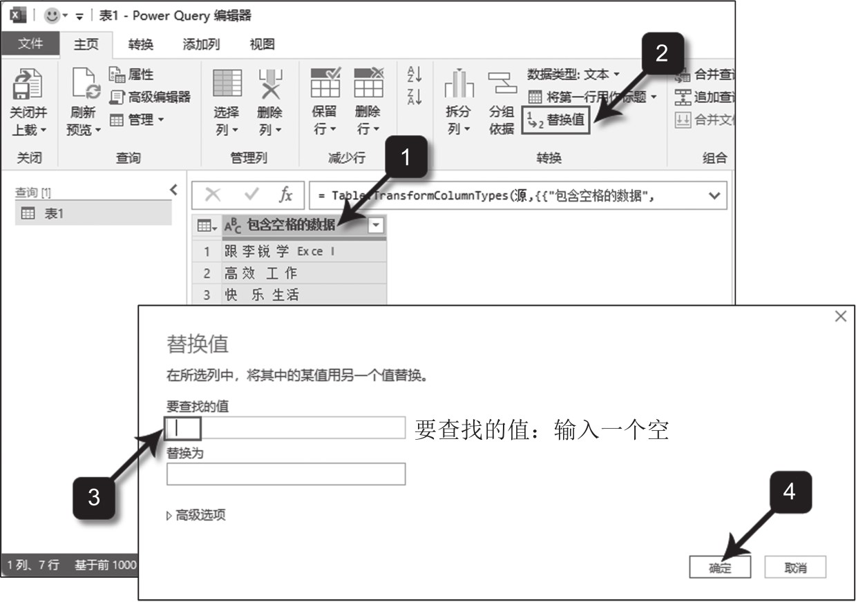 图2-16 在Power Query编辑器中将空格替换为空