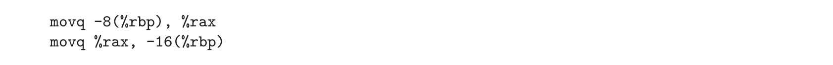 第二个movq指令是有问题的,因为两个参数都是栈的位置。我们建议通过从源位置移动到寄存器rax,然后从rax移动到目标位置来解决此问题,如下所示。