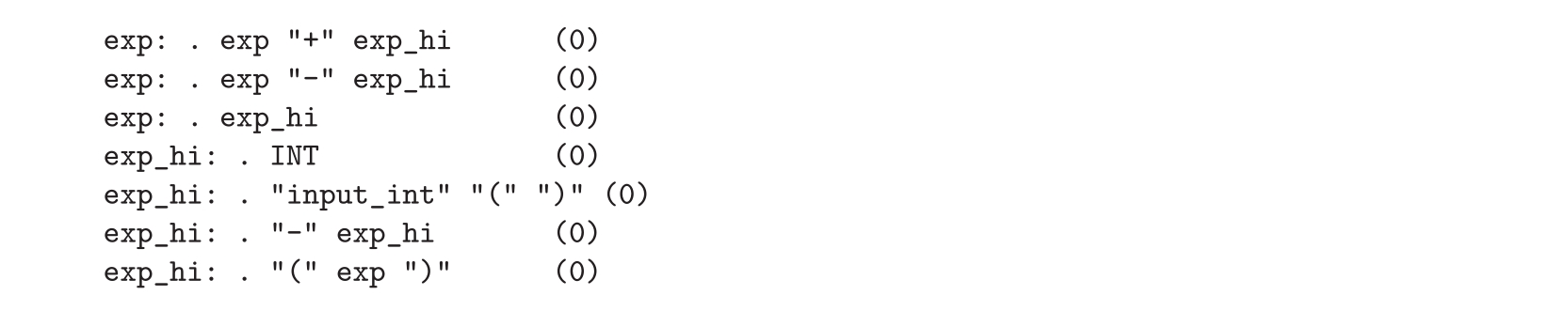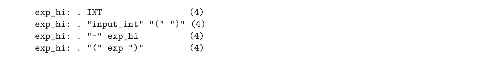 这揭示了更多的预测机会,因此,我们又将exp和exp_hi的文法规则添加到槽0中。