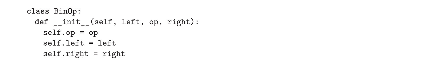 最后,为了表示规则(1.1)中的加法,我们使用BinOp类来表示二元操作符。