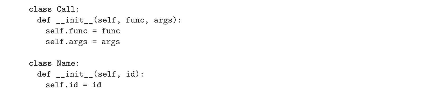 我们为每一种节点使用一个Python 类 。以下是Python的ast模块中常量(也就是字面值)的类定义: