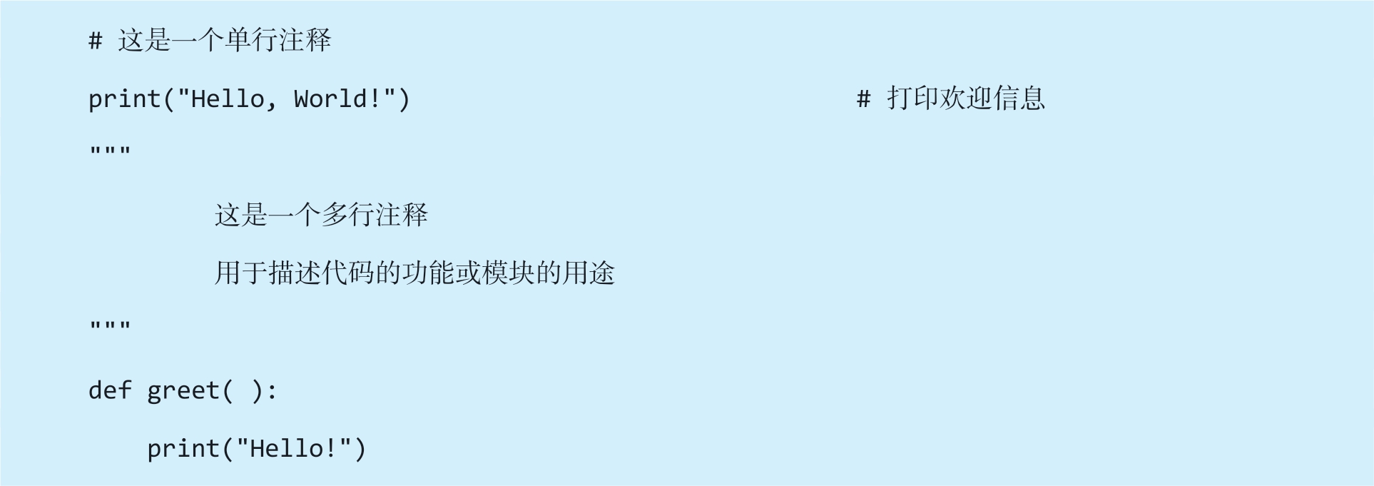 多行注释:使用成对的三引号'''或"""表示多行注释内容。