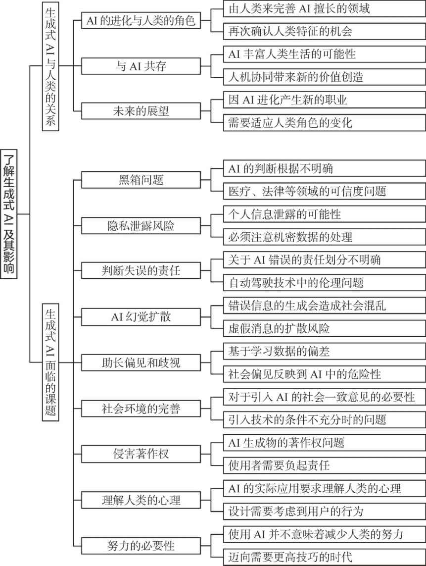 第4章详细分析生成式AI带来的十大问题,如伦理问题、隐私问题、责任划分、虚假信息的扩散等。