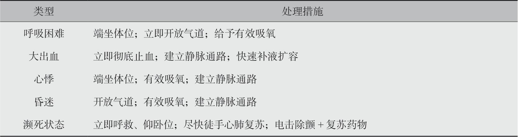 表2-7 急危重症的处理措施