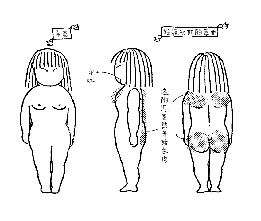 原本一直感觉不到胎儿的存在,可到了这个时期,你就会开始觉得肚子里有东西了。也就是说,母体开始能感觉到胎动。我个人是在19周时感受到胎动的。如果不知道自己最后一次月经的时间,可以从第一次感觉到胎动时开始计算天数,从而推算出预产期。所谓的胎动,是位于肠道附近不自主的运动。换句话说,有什么正在一抽一抽地,骨碌骨碌地,转圈圈似的动来动去。那虽是一个活物,但不像是猫或者胎儿之类的高等生物,反倒更能让人联想到一些低级和混乱的东西……因为靠近肠道,容易让我们联想到一种熟悉的蠕动——排便,尤其是腹泻时肠道的蠕动。据说此时的大便——或者说胎儿——的长度是20~25厘米,重约250克。