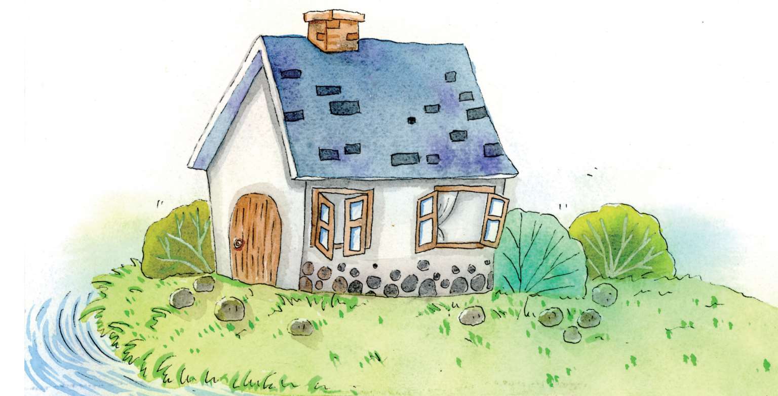 一座老房子,孤零零地坐落在小河边。老房子的四周,到处都是石头和小草。