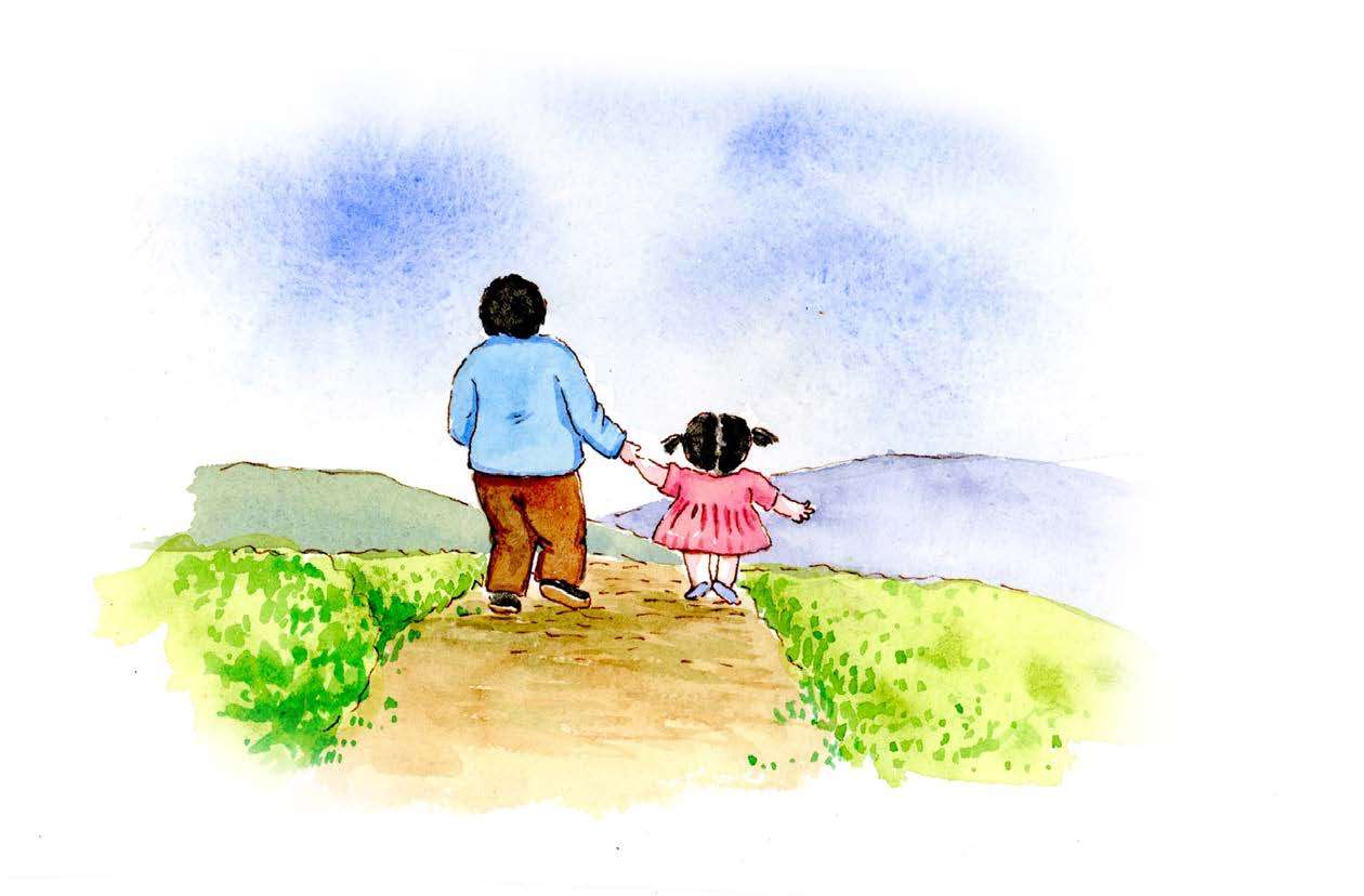 讲了一个又一个,讲得我口干舌燥,眼皮直“打架”。我无奈地问她:“爸爸还要讲多少啊?”女儿把双臂摆成一个“大”字,说:“多多的,这么多!一百个!”