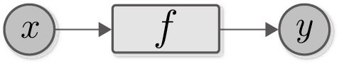之间的关系。这种用节点和箭头来表示计算的图叫作计算图。本书用圆框表示变量,用方框表示函数。