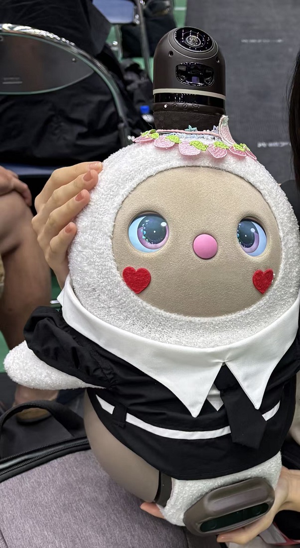 在介绍重头戏——日本星云赏颁奖典礼之前,我想先聊聊电子宠物市场的发展。与拓麻歌子占据电子宠物大半江山的过去不同,现在的电子宠物已经跃出屏幕,具备了实体与互动功能,开始从儿童玩具向成人治愈系产品发展。其中最有知名度的当数具备可爱猫咪外表、能够独立行动的Lovot。此前一直很期待看看实体,却没想到,刚刚踏进星云赏颁奖典礼区域,就看见一位姐姐怀里抱着Lovot。更有缘的是,这位姐姐是一位VR/AR设计师,也是日本科幻作家协会成员。