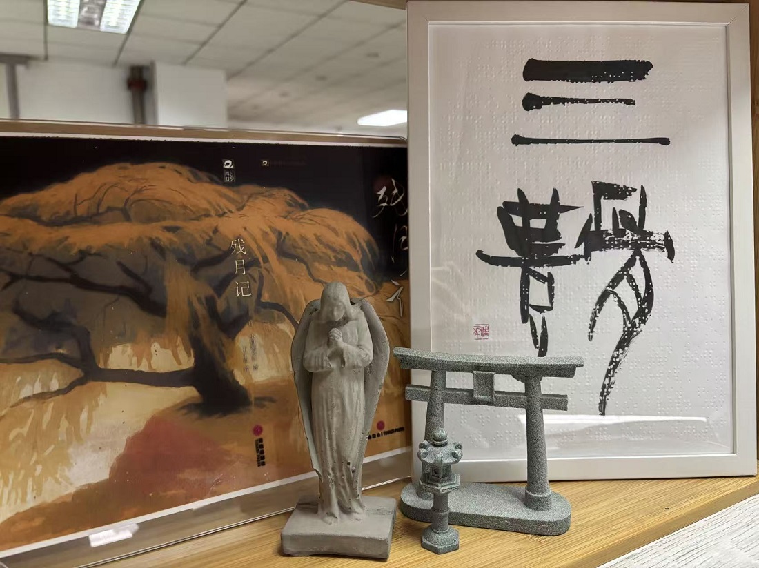 值得一提的是,今年大会上再次见到了新岛屿出版社联合创始人丁诗颖老师,我们两个人又坐在同样的位置、吃了同样的大阪烧。与那时不同的是,丁老师与梁老师今年在日本成立了自己的图书公司,致力于在日本推出更多中国故事。另外,收获一幅丁老师赠送的《三体》书法,现在已经摆在科幻世界办公室大厅书架,期待未来有机会再一道欣赏这幅书法。