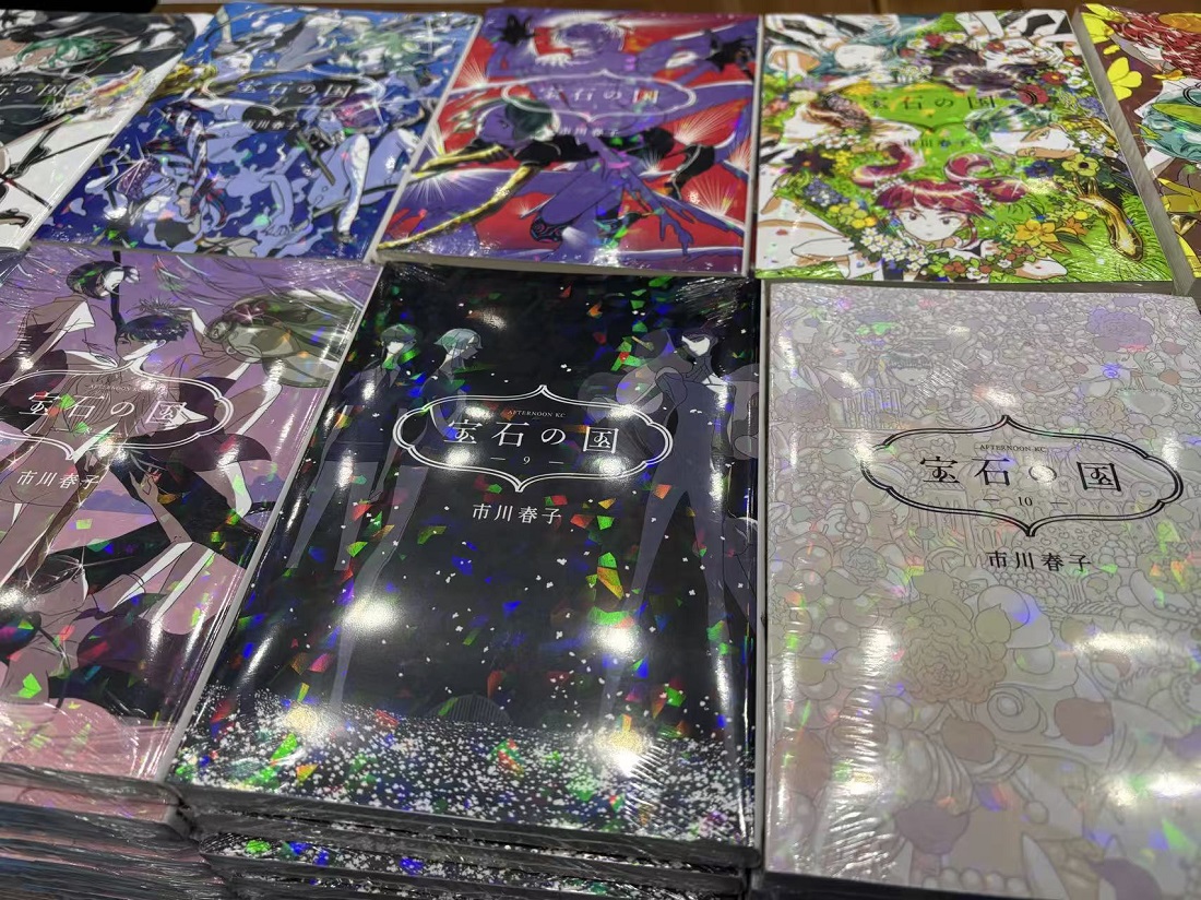 我们还在其他展位遇见了整套《宝石之国》。这套漫画今年在日本星云赏上斩获大奖,不过,在遇见它的瞬间,我首先是被闪闪发亮的封面吸引了。好的工艺总是与图书主旨相得益彰,不愧是充满宝石的世界。